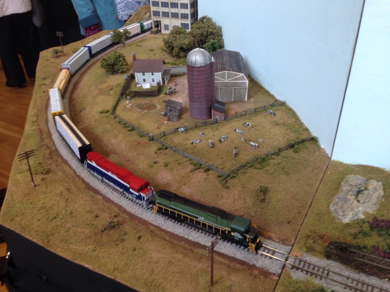 5 of 9: Finished lumber passes Ted's Farm behind BC Rail power