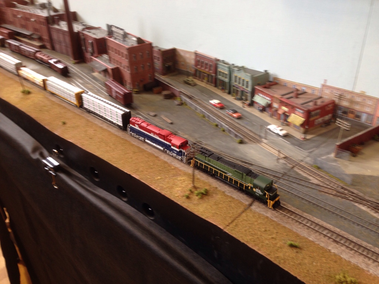 4 of 9: Finished lumber passes Water Street yard behind BC Rail power