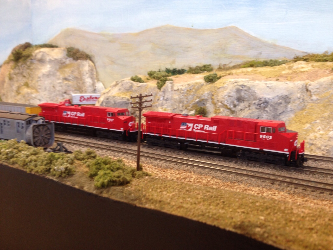 2 of 9: CP Rail AC44CW locomotives hauling black diamonds (coal) through Solent Summit.
